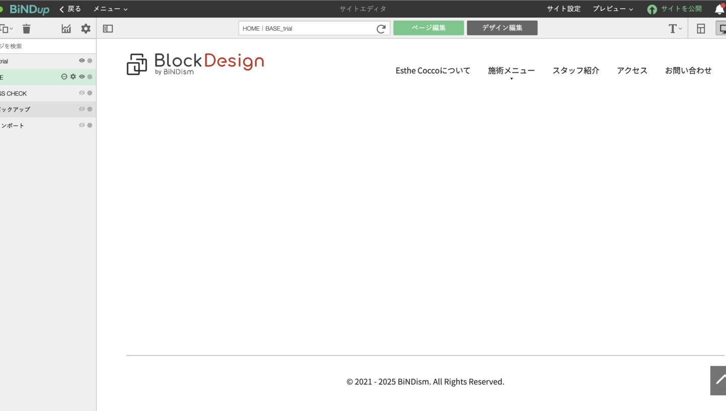 BiNDupのテンプレートでは、サイト全体の設定である「サイトDRESSテーマ」の影響によりBlockDesignの修正が必要になるケースがあります。