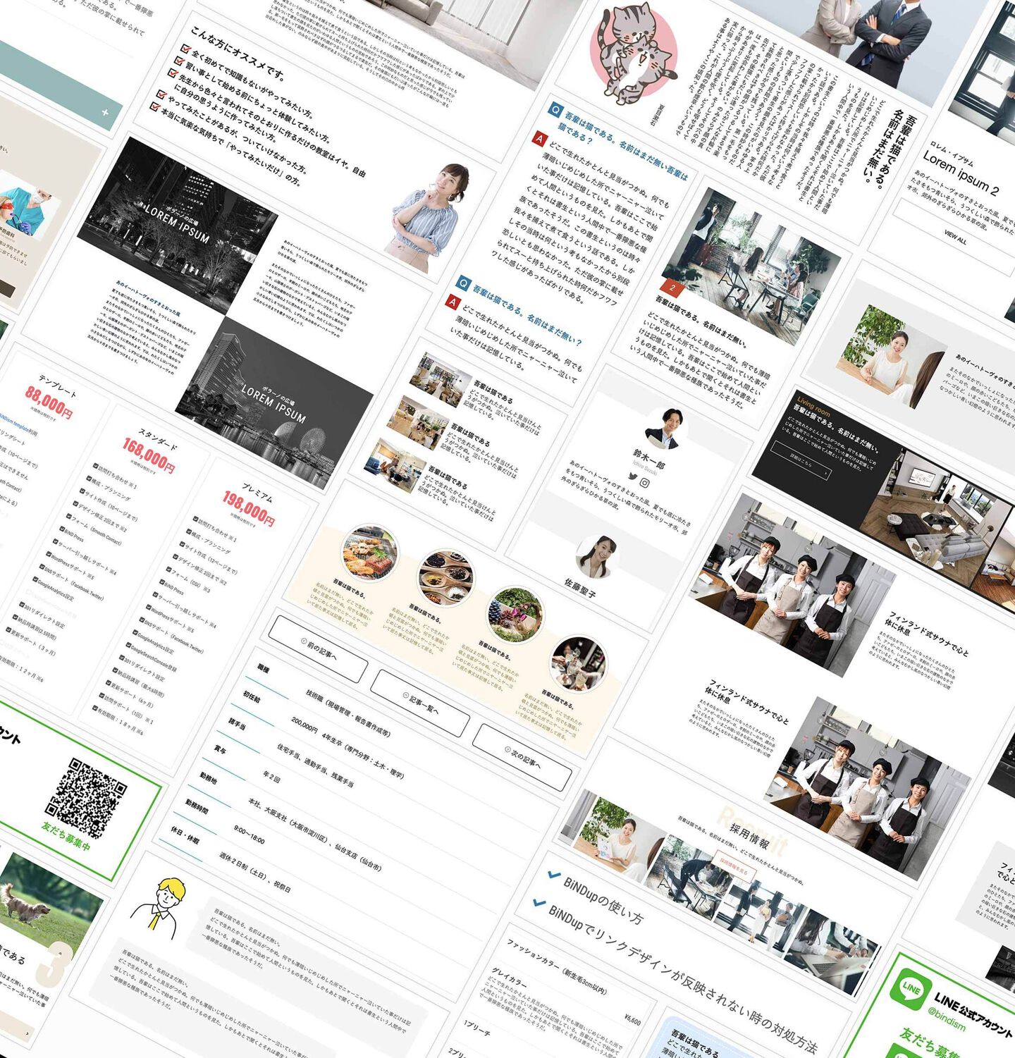 BiNDismでは原則としてBiNDupのテンプレートは使いません。その理由は更新しにくいからです。「自由に作成」でゼロから作りますのでデザイン・レイアウトは自由です。「いつも見ているあのサイトみたいにしたい!」というご要望をお聞きしてBiNDでカタチにします。