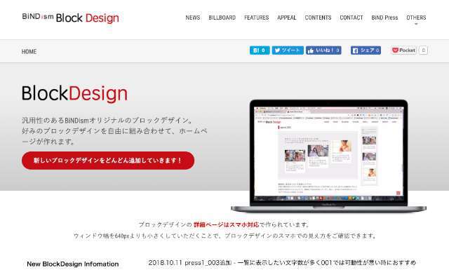 「いいな!」と思ったデザインをBiNDupで作成しました。ブロックデザインは全てレスポンシブで作ってあるから写真や文字を入れ替えるだけですぐに使えます。好みのブロックデザインを好きなだけ組み合わせて、さらに順番も思いのまま。