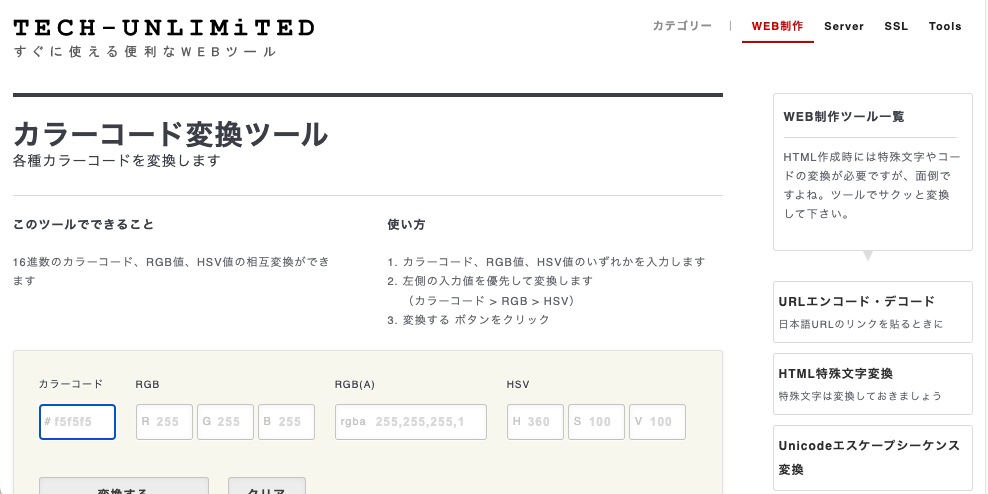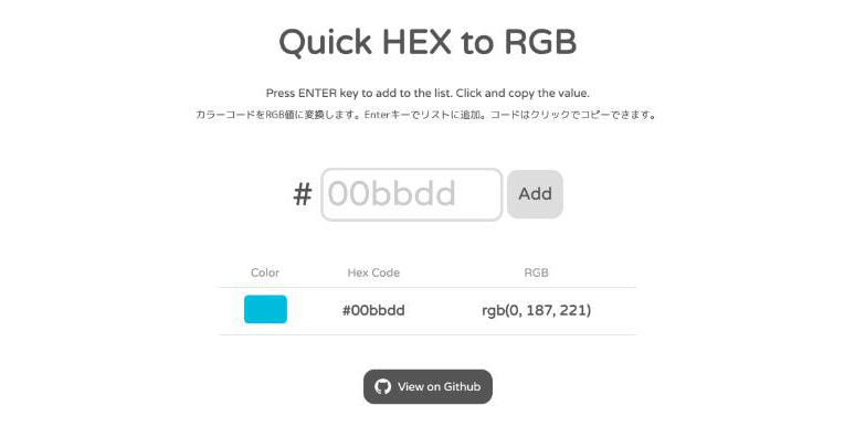 色を6桁で表すHEX値を簡単にRGBに変換した値を表示してくれます。icooon-mono のように色を指定するときにRGB値でないとダメな時があるので、そんな時に使えます。