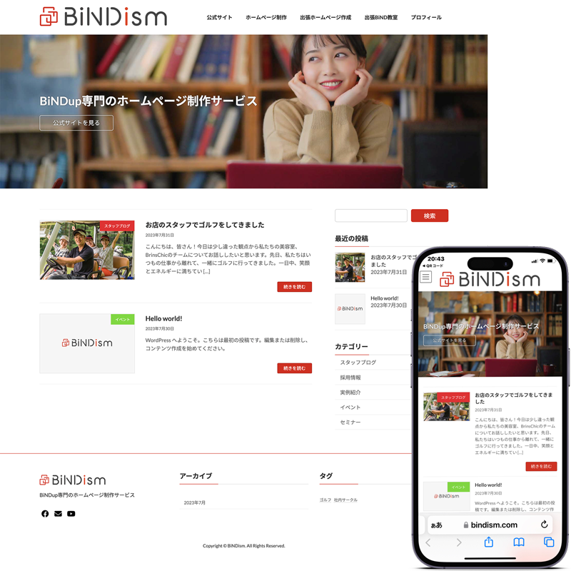 テーマの見え方を確認いただくためにBiNDismで作ったサンプルWordPressサイト